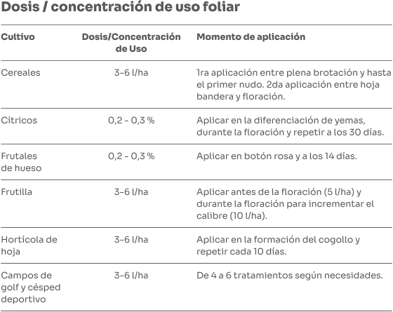 › Aplicaciones aéreas: 1 litro c/1000 lts. de caldo.
